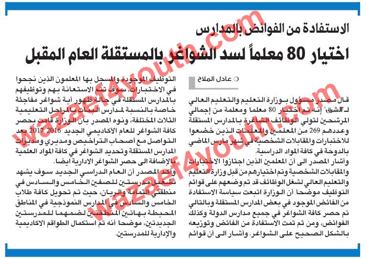 اعلان وظائف وزارة التعليم القطرية للعام الدراسي 2017 2018 معلمين ومعلمات لجميع للمراحل الدراسية براتب حتي 10 الاف ريال قطري وظائف تعليمية لكل الدول العربية