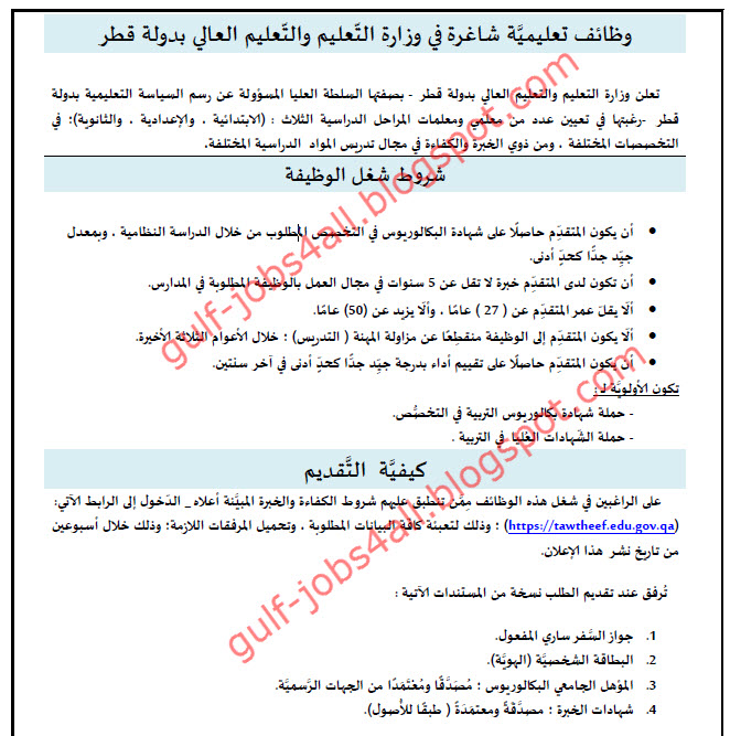 وزارة التعليم والتعليم العالي توظيف في قطر للعام الدراسى 2020 2021 مدونة وظائف الخليج