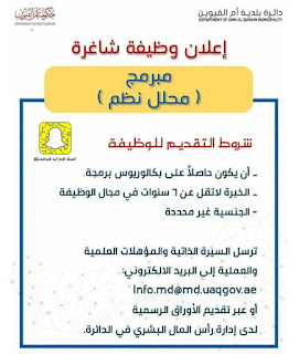 وظائف شاغره برواتب 5000 درهم في جمعيه ام القيوين الامارات 2018