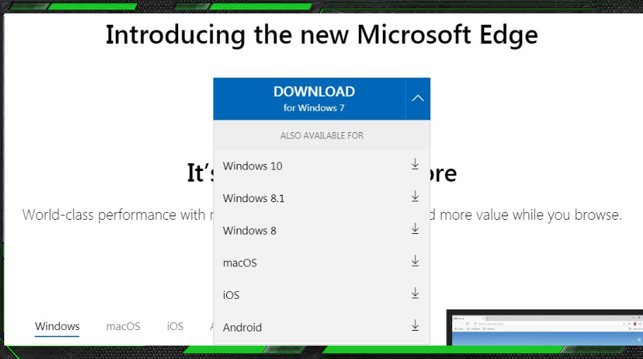 تحميل متصفح مايكروسوفت إيدج Microsoft Edge الجديد لويندوز 7 و 8 8 1