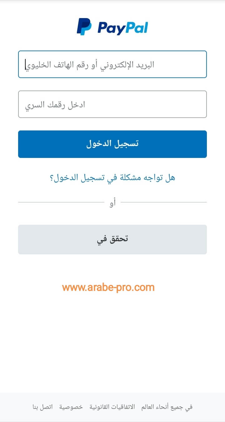 تسجيل دخول باي بال