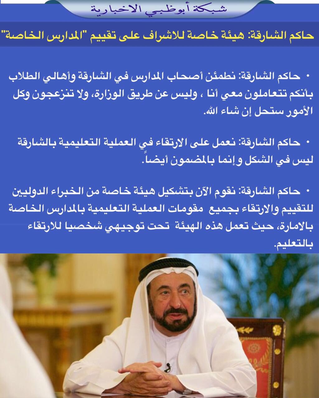 شبكة أبوظبي Pa Twitter حاكم الشارقة هيئة خاصة للاشراف على تقييم المدارس الخاصة