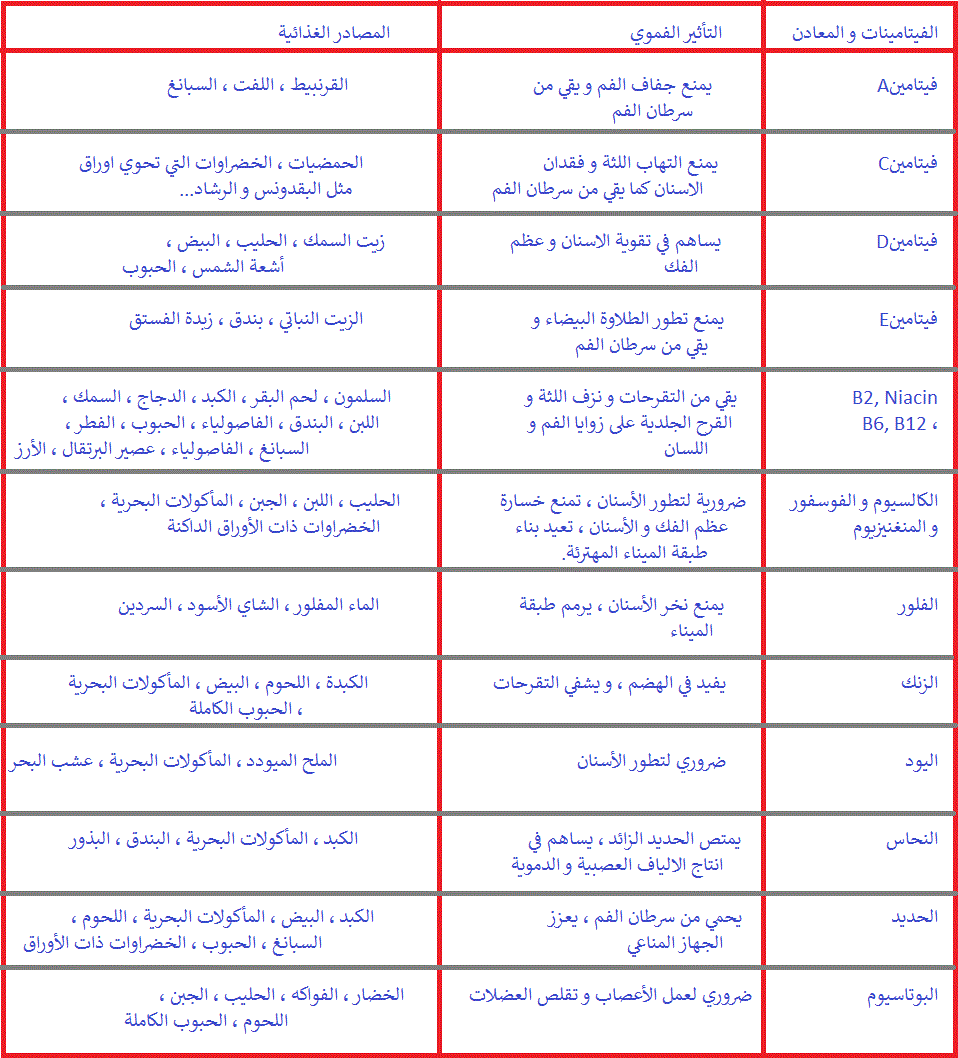 جدول الفيتامينات والمعادن ومصادرها وفوائدها