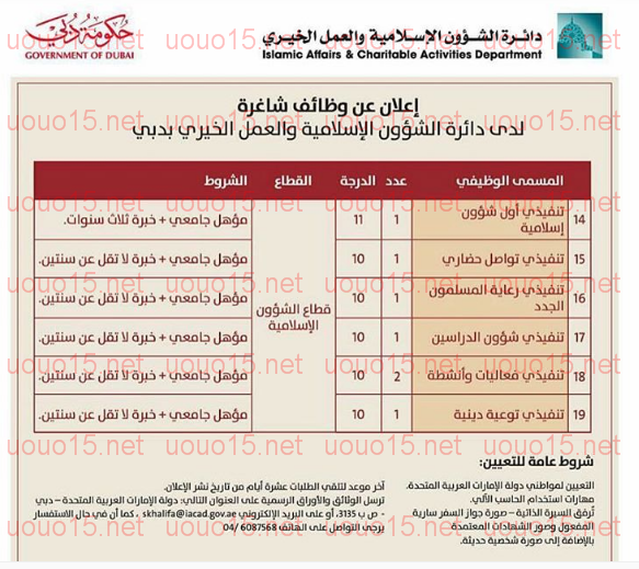 وظائف دائرة الشؤون الإسلامية والعمل الخيري في دبي 15000 وظيفة