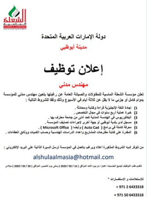 وظائف مؤسسة الشعلة الماسية للمقاولات والصيانة العامة وظائف شاغرة فى الامارات