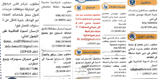 فرص عمل في الامارات منشورة فى جريدة الخليج الامارات وظائف الامارات والخليج وظائف شاغرة