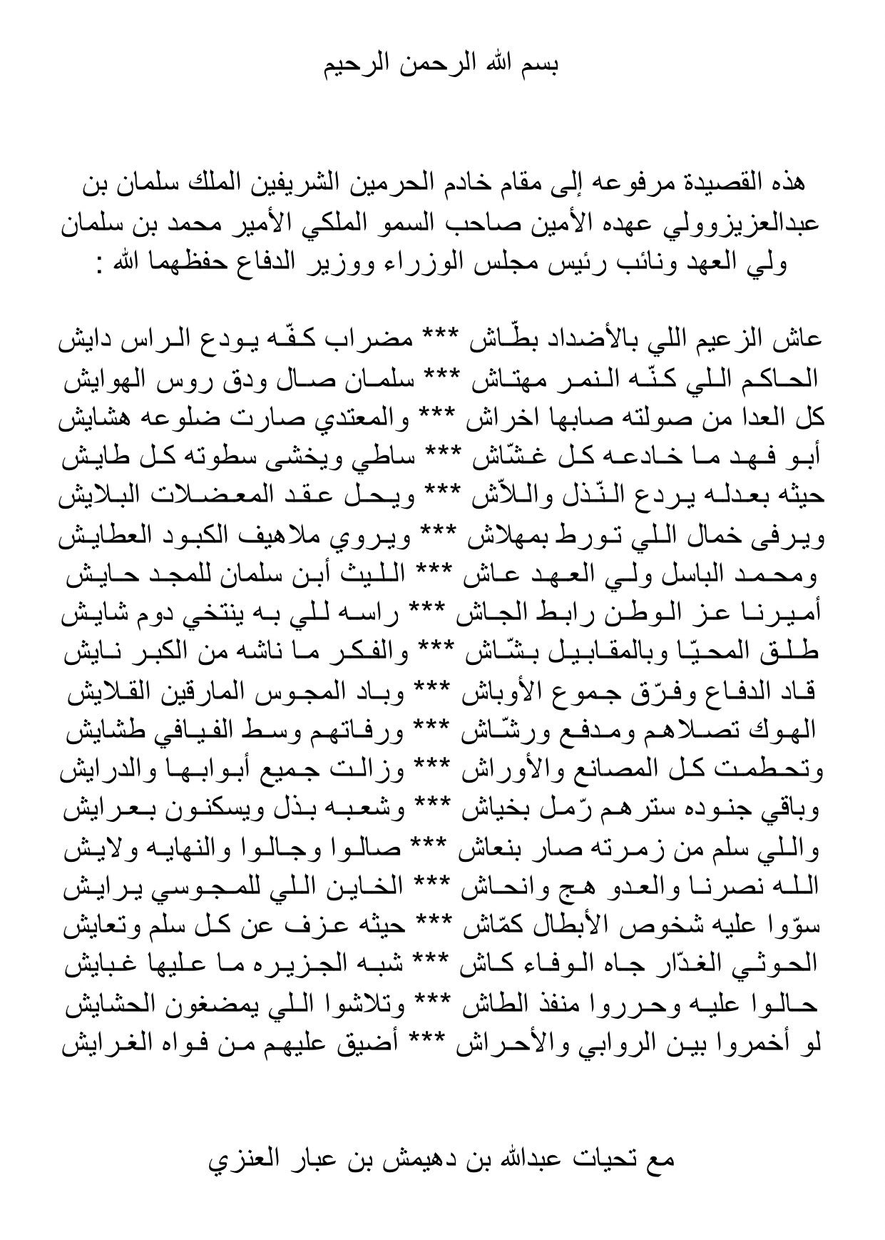 حساب منتدى عنزة No Twitter قصيدة الشاعر المتألق ضيف الله بن صالح الضوي العنزي قصيدة فخر بقائد الأمة الملك سلمان حفظه الله عنزة ويلان