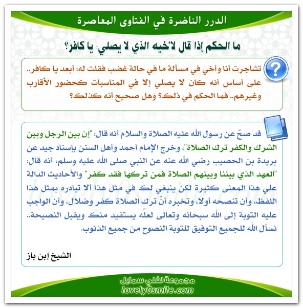 ما الحكم إذا قال لأخيه الذي لا يصلي يا كافر لفلي سمايل