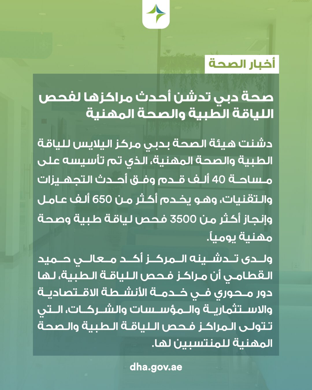 أكثر من 760 000 فحص لياقة طبية ومهنية بصحة دبي منذ بداية العام الجاري
