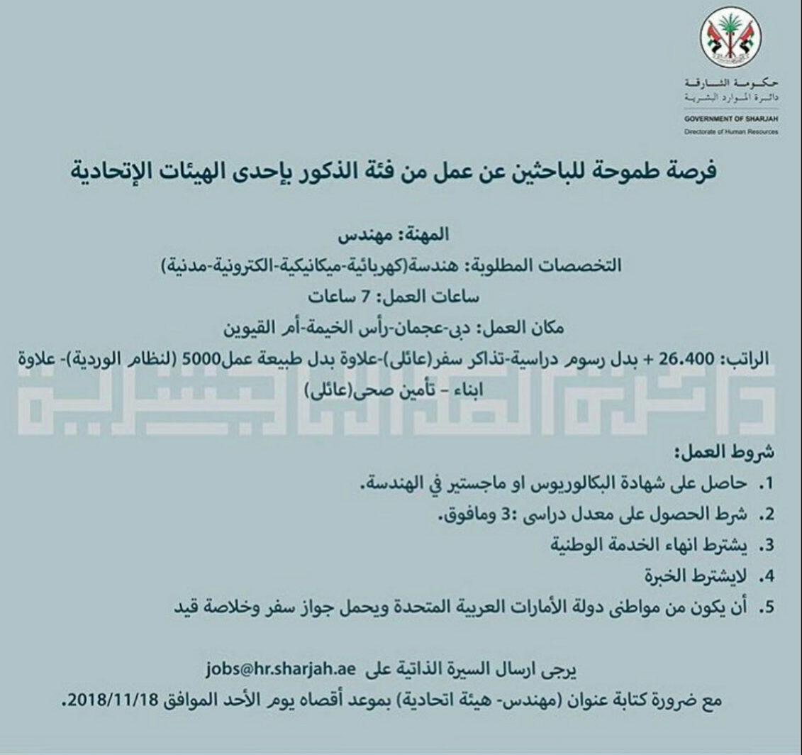 وظائف شاغره برواتب 18 الف درهم بدائره الموارد البشرية بحكومه الشارقة بالامارات 2019 وظائف الامارات والخليج وظائف شاغرة
