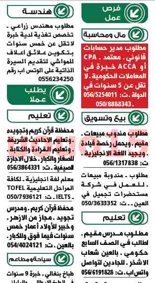 اعلانات وظائف في العين منشورة فى الوسيط الامارات اليوم 10 مارس 2018