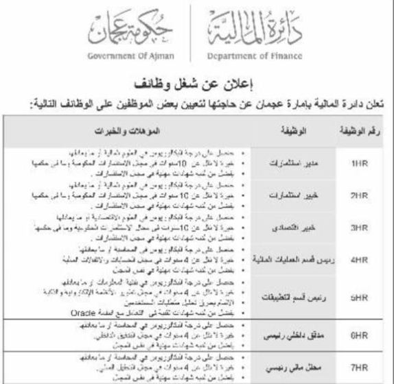 وظائف حكومية بدائرة المالية بحكومة عجمان للعديد من التخصصات وظائف الامارات والخليج وظائف شاغرة